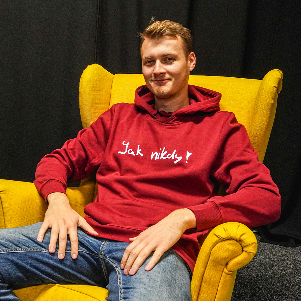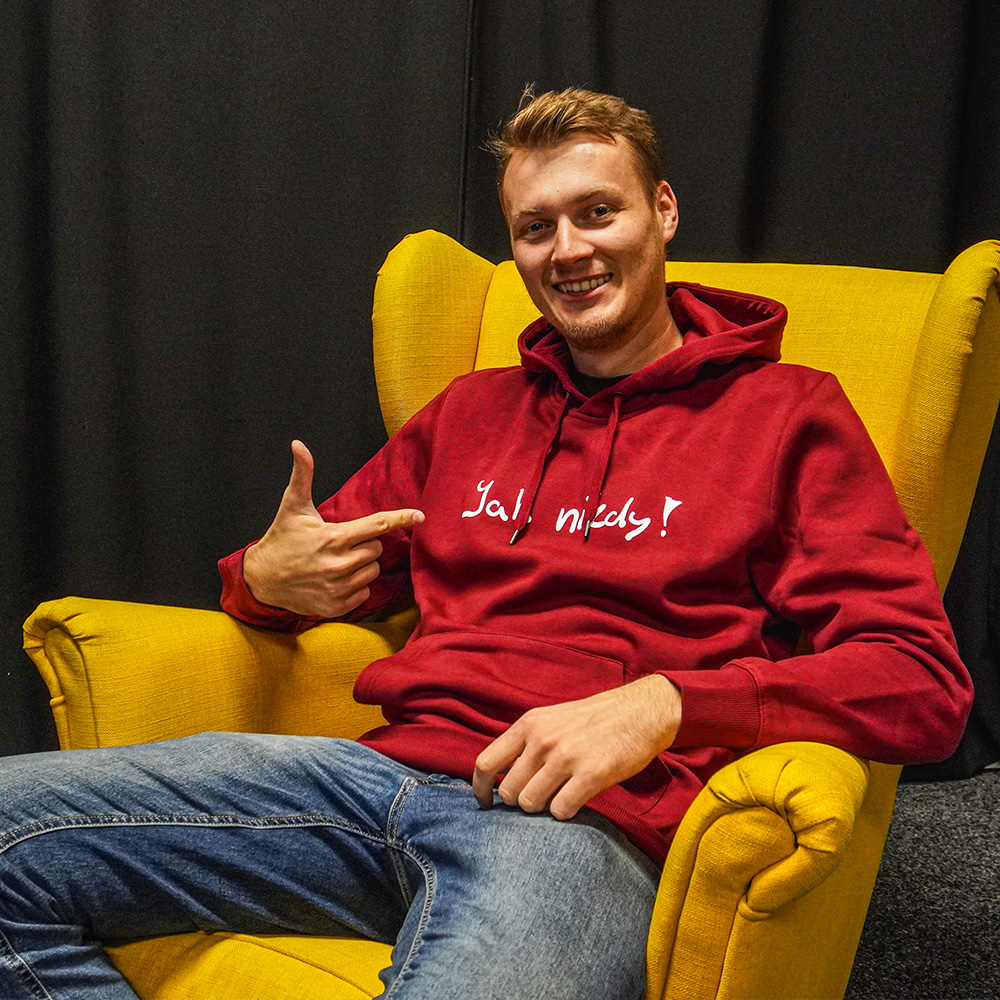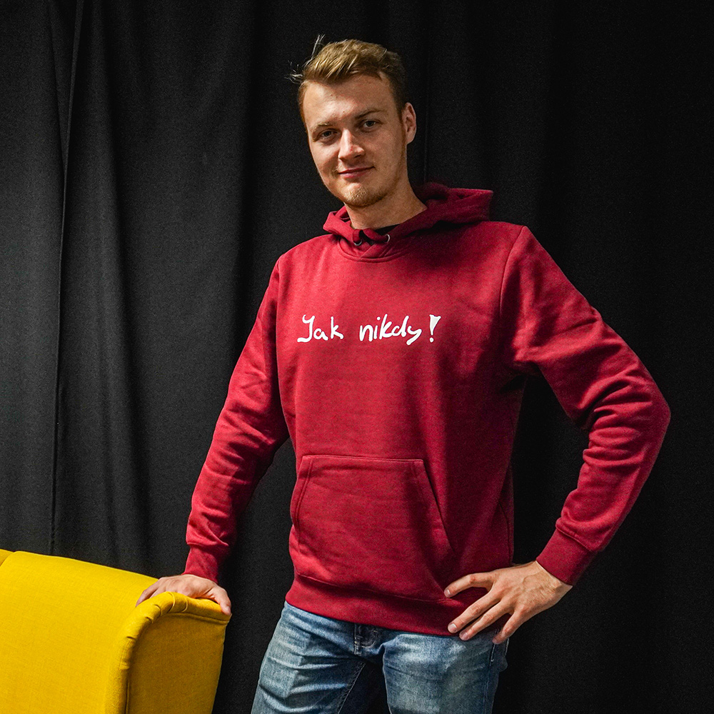 Každý z moderátorů podcastu vlastnoručně navrhnul jednu parádní mikinu. Vojta si na ni vybral svou legendární hlášku „Jak nikdy!“.